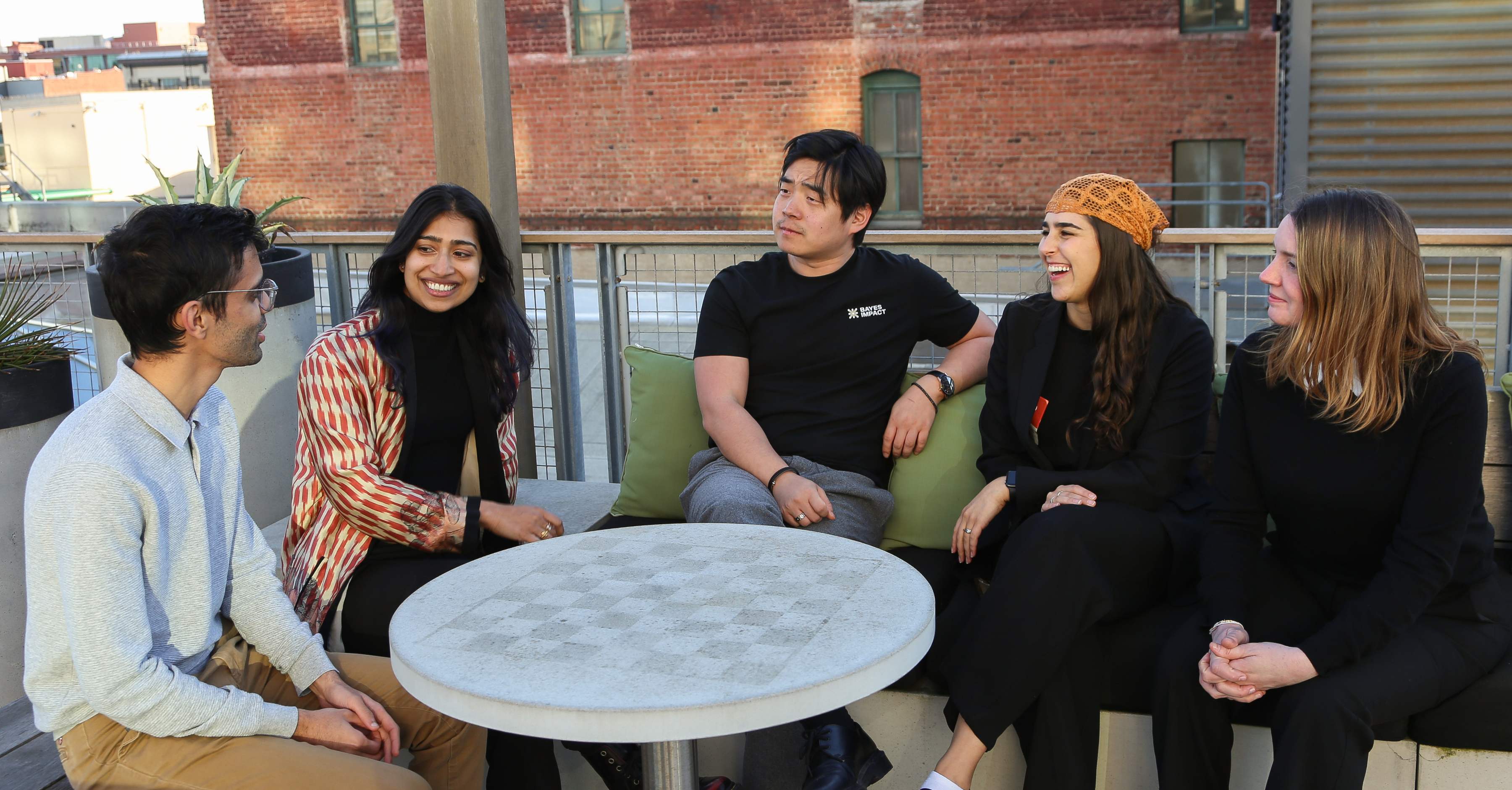 The cohort visited Bloomberg's downtown San Francisco office for an immersive day of learning and collaboration. Malia Simonds, Bloomberg's Head of Western U.S. and Latin America Corporate Philanthropy, opened the day with a warm welcome, highlighting inspiring examples of Bloomberg's partnerships with Fast Forward alums. The sessions began with a dynamic fireside chat on storytelling, led by Sabrina Briefel, Global Corporate Philanthropy, Social Impact at Bloomberg, and featuring Bloomberg News technology editors Tom Giles and Jillian Ward. They shared actionable advice on how founders can craft and pitch compelling stories to the media. The teams then rotated through interactive sessions, including personalized consultations on organizational strategy, AI implementation, and more, making for an impactful day.